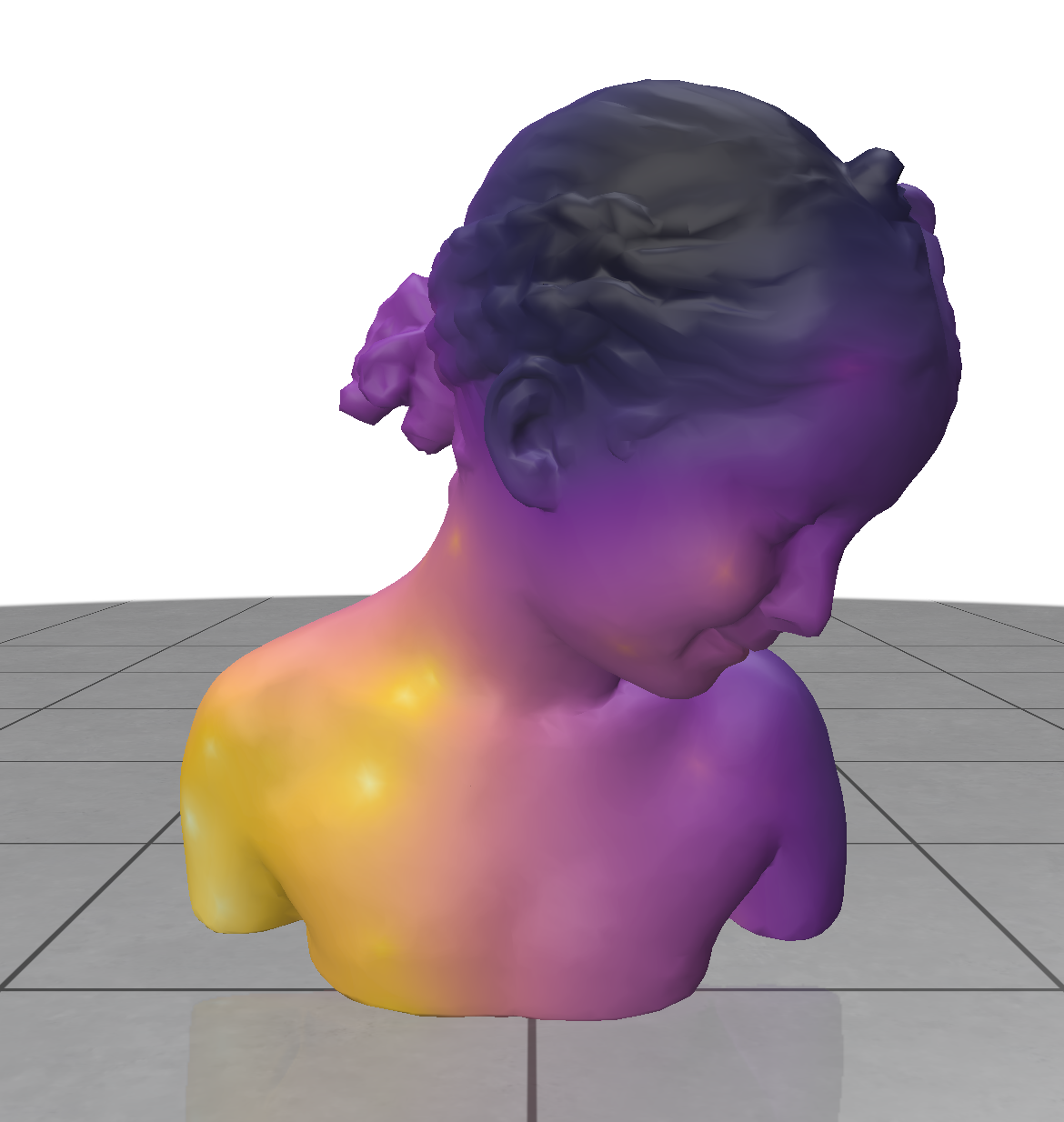In this lecture, we will be playing with differential estimators and solving PDE on meshes, such as Poisson based geodesics: